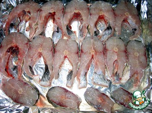 Рыбку надо хорошенько почистить от чешуи... освободить от внутренностей, вынуть жабры, отрезать голову, хвост и плавники...