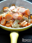 Кстати, я думаю, лучше будет морковку настрогать длинными полосками, чтоб получились рыжие спагетти