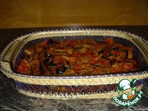 Баклажаны с соусом, в 3 ст. л., потушить в сковороде 10 мин.