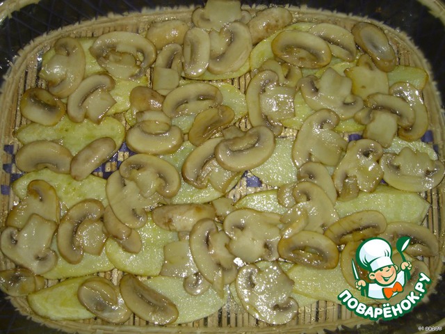 Весь соус выложить на грибы и поставить в разогретую духовку 160-180С (зависит от мощности вашей духовки) на 20-30 мин.