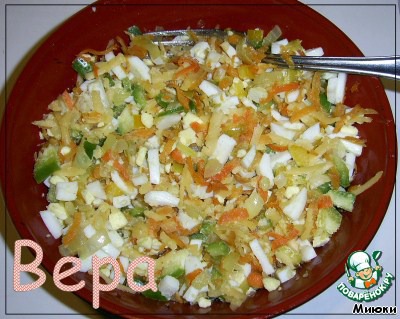 Яйца измельчить, смешать с сыром, сладким перцем.