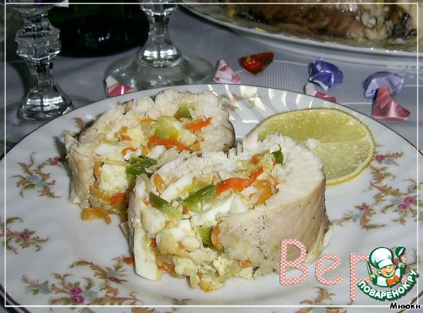Нежное рыбное филе с овощной начинкой, прекрасно подойдет к праздничному столу. На конкурс "Подари мне этот вечер".