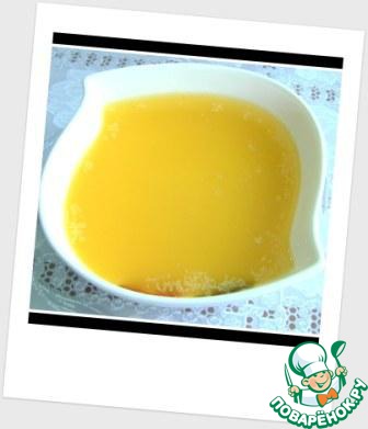 Ставим кастрюльку с соусом на крошечный огонь, добавляем сахар и, не переставая взбивать миксером, медленно вводим горячее сливочное масло. Соус будет готов когда немного загустеет, то есть на огне держим его около минуты.