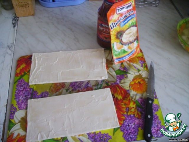 - Тесто слоеное (2 пласта + 1 на украшение)