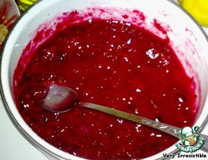 Для начала разотрем клюкву с небольшим количеством сахара (3-4 ст.л.) при помощи блендера, либо вилки. Делаем это сразу в емкости, которую впоследствии можно будет поставить на водяную баню. -
