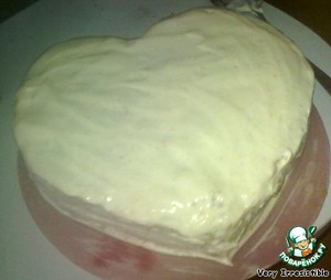 Я решила вырезать торт в виде сердца. Сначала вырезаем, а затем обмазываем кремом. -