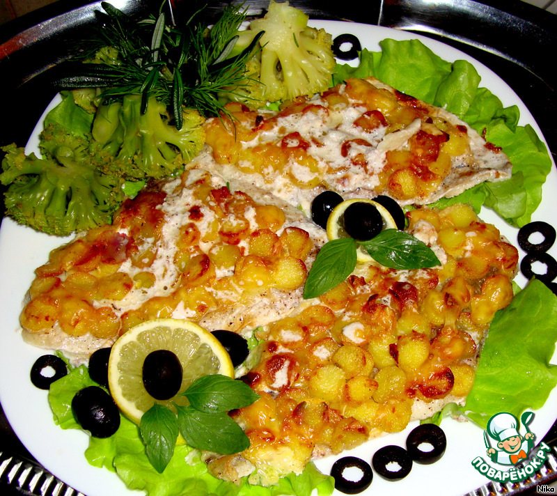 Рецепт "Тилапия под хрустящей картофельной чешуей":