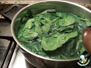• Отварим шпинат. Поварите минут 5, чтобы стебельки стали мягкими.