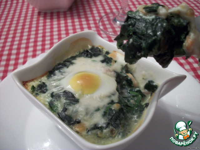 Оставалось полпакета шпината в холодильнике. Думала: "Как бы изощриться?" И вот придумала! Особых секретов нет, но получилось красиво и вкусно.