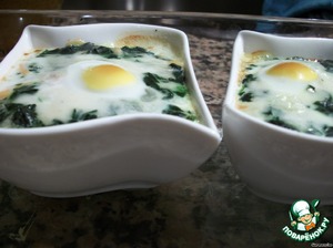 • Положите кокотницы в горячую духовку (210 градусов) минут на 10. Может, чуть больше. Как только будет готово яйцо, можно вытаскивать.