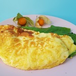В тарелку выкладываете омлет, сверху в один край кладете мясную заготовку и закрываете другим краем.
