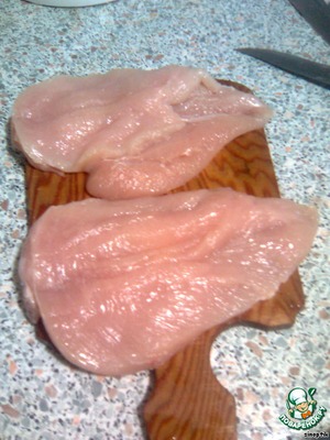 • Моем куринное филе и разрезаем "книжечкой".
