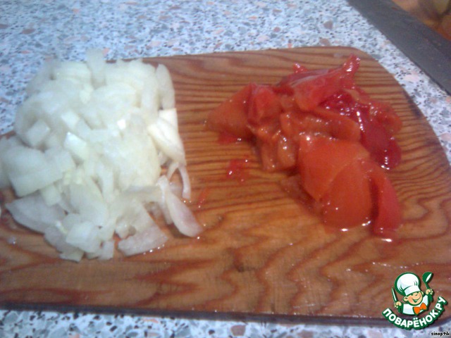 • Режем лук и перчик (кубиками).