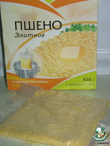 Из одного пакетика пшена сварить кашу. Готовую кашу остудить, не добавляя масла. Добавить яйцо, обжаренный в масле лук, муку и соль.