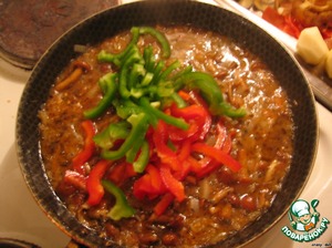 Добавить наши перчики в поджарку, перемешать и немного потушить, но недолго.
