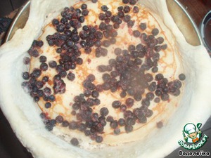 Сверху выкладываем 3 блинчика и посыпаем смородиной (замороженную не размораживать).