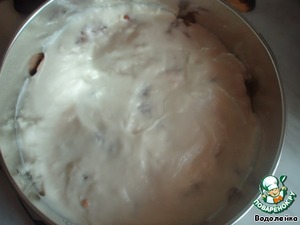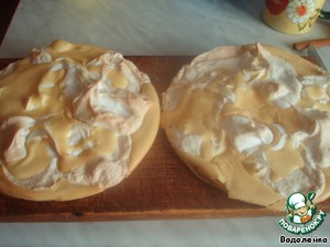 Верхний (3 корж) пока не смазываем. Ставим в холодильник на 2-3 часа.
