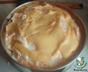 А тут я показала, как заполняла третью форму. Т.к. вместо дна у нас пекарская бумага, то тесто будет растекаться, не смотря на борта. Поэтому я белое тесто выложила вдоль бортика по кругу, а желтое в середину. Если формы заполнены, а немного теста осталось, его просто выложить сверху.