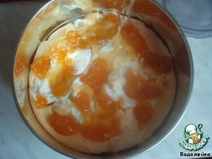 Собираем наш торт. На форму надеваем разъемные борта. Кладем корж, на него немного варенья (джема).