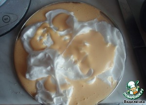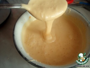 Теперь тесто №2. Хорошо взбиваем миксером (или в блендере) желтки, яйцо, сахар, ванильный сахар. После добавляем муку, только не всю сразу, а постепенно (тут может уйти муки больше, чем указано в рецепте, все зависит от величины яиц). Тесто должно получиться как сметана средней жидкости.