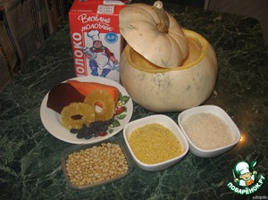 В молоко положить сливочное масло, засыпать крупы и мелко порезанную мякоть тыквы. Сварить до полуготовности