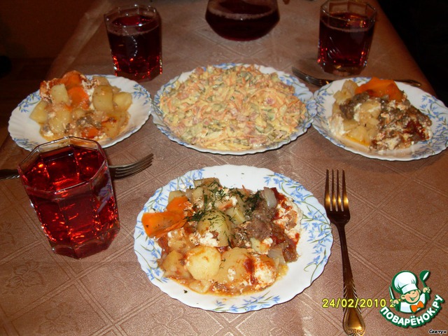 А это то, что получилось на ужин. Затраченное мною время на приготовление - 40 минут на все. Угощайтесь!