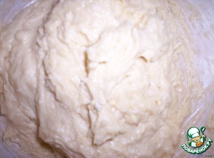 Масло взбиваем с медом до белой массы, затем добавляем яйца, еще раз взбиваем, добавляем муки.