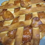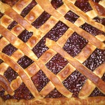 Этими полосками закрываю пирог, смазываю его яйцом или молоком. К этому времени духовка готова выполнить свою работу. Пирог отправляется в "солярий" "загорать", у меня на это уходит 15-20 минут, не больше, хотя всё зависит от духовки. Пирог готов. Приятного аппетита.