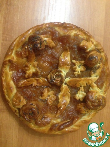 Сегодня у меня начинка из яблочного повидла с добавлением 4 ст. ложек варенья из апельсиновых корок. Начинка может быть разная: капуста, рыба, фрукты, овощи, как фантазия подскажет.