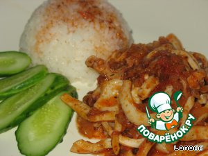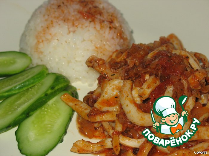 Сказать по правде, я не знаю как переводится "куми-куми", но то, что это блюдо готовится из кальмара, это однозначно. Готовится оно быстро и не хлопотно. В приготовлении задействован минимум продуктов. Рецепт доступен каждому. Я вам напишу продукты в оригинале, а ниже свои изменения.