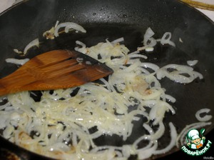 Луковицу очистить, нарезать тонкими полукольцами и обжарить до мягкости. Отложить.