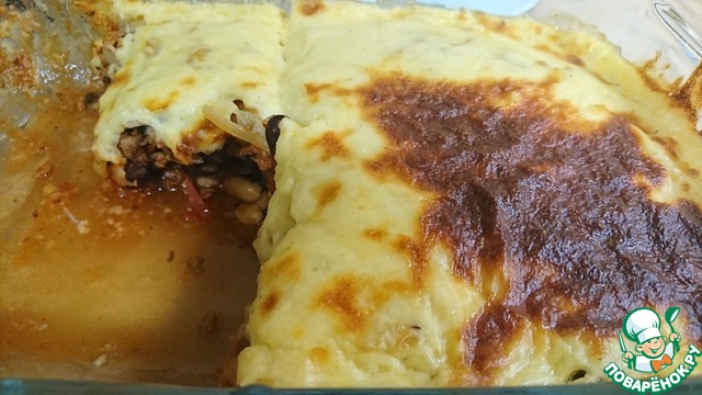 Рецепт «Мясная запеканка с фасолью под сырным соусом»: