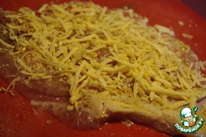 Сыр натираем на крупной тёрке, посыпаем половиной рыбу.
