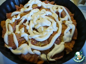 • Лосось выложить на морковь, выжать на него сок лимона, посыпать приправой для рыбы.