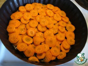 • Морковь почистить, нарезать кружками, обжарить в огнеупорной форме на растительном масле до золотистого цвета 3-4 минуты.