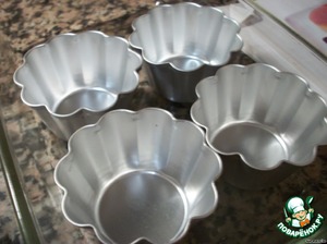 Разольем ее по формочкам, чтобы покрыло дно. Я брала разные. Вот такие ребристые и плоские тоже.