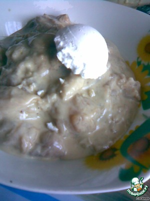 Замариновать этим маринадом кусочки курицы. Оставить на 4-5 часов. Можно и на ночь.