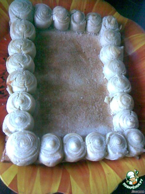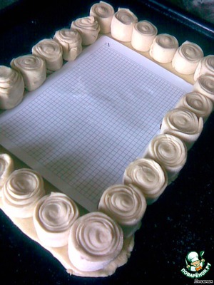 Основной кусок теста перенести на противень. Края смазать сырым яйцом.