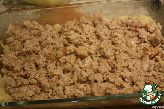 И выкладываем слоями: пюре