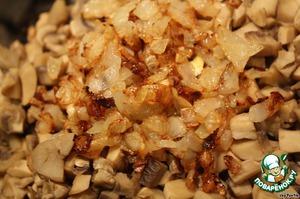 Обжариваем в масле до золотистого цвета и смешиваем с готовыми грибами