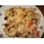 Отправляем наше блюдо в разогретую градусов до 200 духовку, пока сыр не подрумянится (у меня получилось минут 10-15, а вы смотрите по своей духовке)