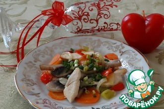 - Курица (у меня запеченное) — 300 г