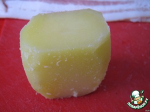 Предварительно отвариваем картофель до полуготовности (около 15 минут). Чистим картофель, обрезаем в виде бочоночка.