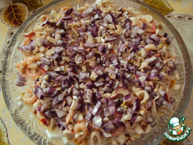 Вкусненький салатик с креветками и крабовым мясом. Заходите, угощайтесь!