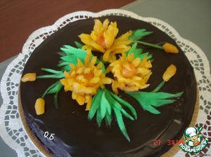 Правда при сборке верхний корж у меня совсем развалился (руки-крюки). Пришлось сверху обильно укладывать фрукты для маскировки