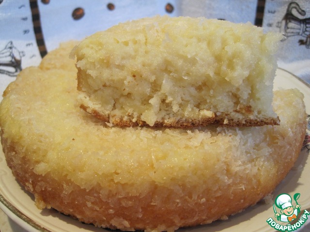 Утро субботы. Солнечный лучик, ласково коснувшийся стен нашей спальни, щебетание птичек и я, сладко потягиваясь, подумала: "Как же хорошо... Не нужно никуда торопиться, можно еще понежиться лишнюю минутку, а потом, сидя у окна на кухне, насладиться чашечкой свежезаваренного кофе". Мое настроение было таким праздничным и лирическим, что хотелось крикнуть целому миру: "Доброе утро!". "Доброе утро, а завтрак скоро?" - оборвал мои мысли на полуслове мой горячо любимый муж, стоящий в дверном проeме и нервно теребящий мой домашний халат. Ну вот почему? Почему так быстро всe хорошее заканчивается? Опустить меня с небес на землю одной занудной фразой "Завтрак скоро?". Ох уж эти мужчины, как дети малые. Собрав всю свою волю в кулак и лихорадочно перебирая в памяти что бы такого приготовить, я подошла к холодильнику, открыла и долго всматривалась в его содержимое, как будто за это время там должно было появиться невесть что. Нервы не выдержали у... холодильника. "Чего тебе надобно?" - чуть не сказал он, почти как у Пушкина в "Золотой рыбке", благо я вовремя успела закрыть дверцу. Картина неприглядная: давно скучающая кокосовая стружка, пакет кефира, пакетик сливок, ах да, и одно сиротливо лежащее яйцо. Ну что можно приготовить из одного яйца в этой жизни? А я всe-таки попробую. И со смиренным видом пошла готовить "Кокосовый кухен". Автору этого рецепта Svetlana-SP не просто благодарность, а низкий поклон. Ну что, поехали!