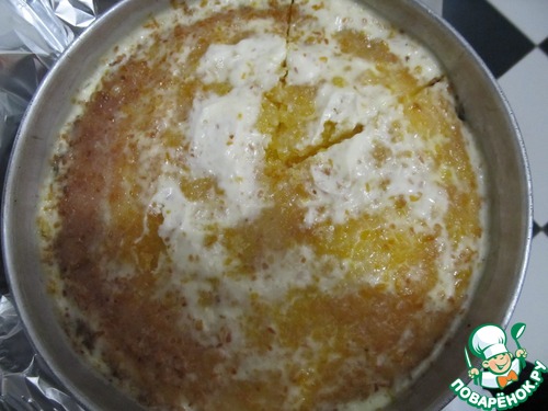 Готовый пирог (горячим) поливаем 20% сливками и оставляем остывать.