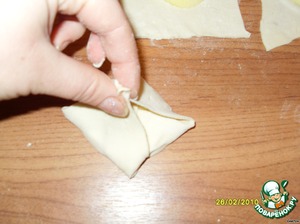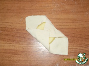 Заворачиваем тесто с яблоком (как показано на фото).