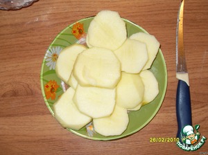 Чистим яблочко, режем тонкими ломтиками, примерно около 1-1,5 см.