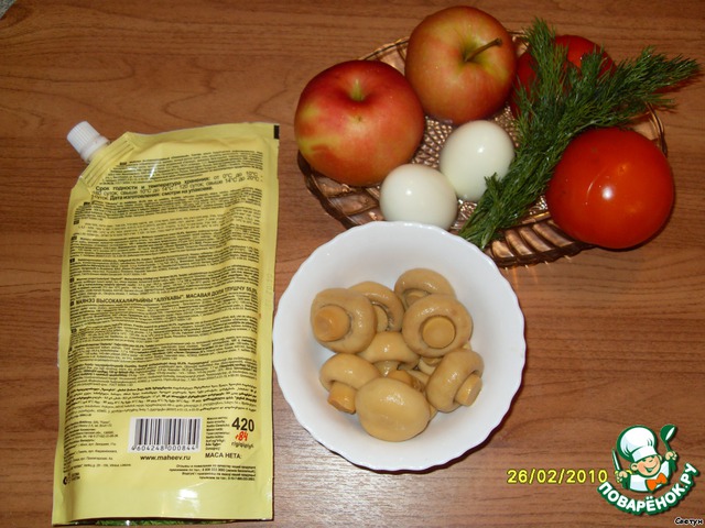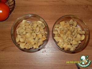 Нарезать шампиньоны мелко, уложить в креманку 1 слоем.